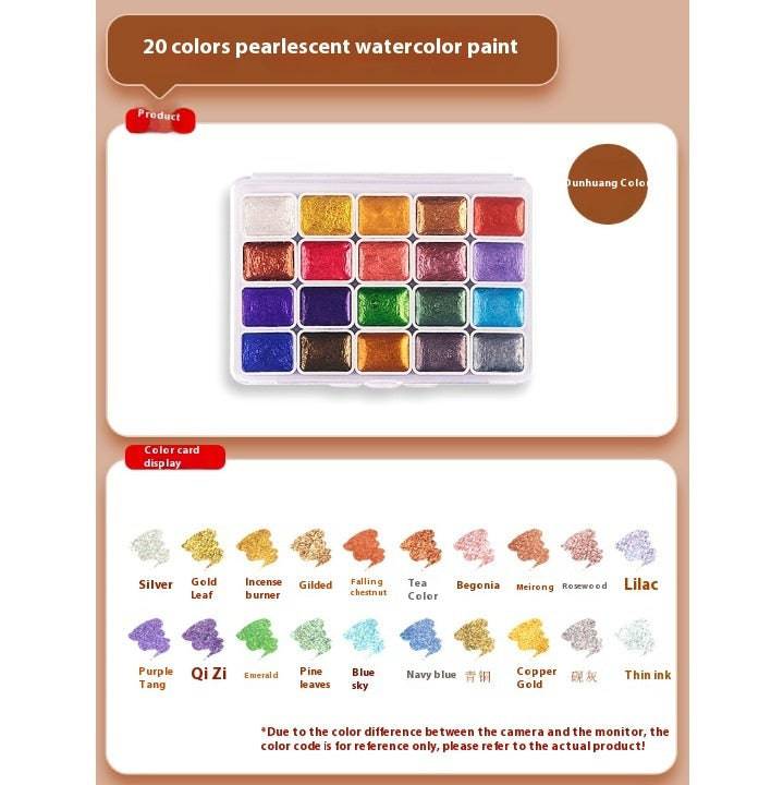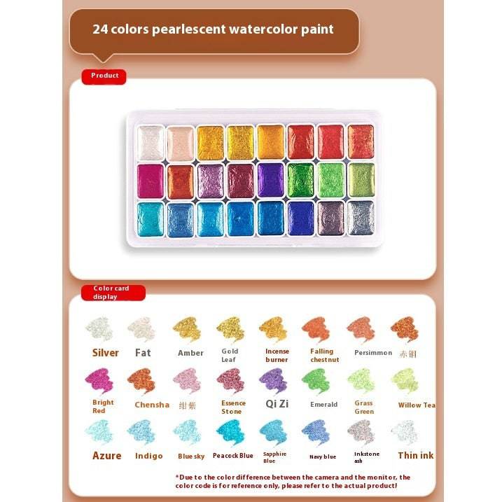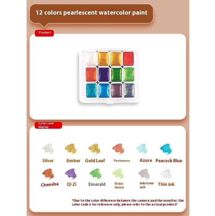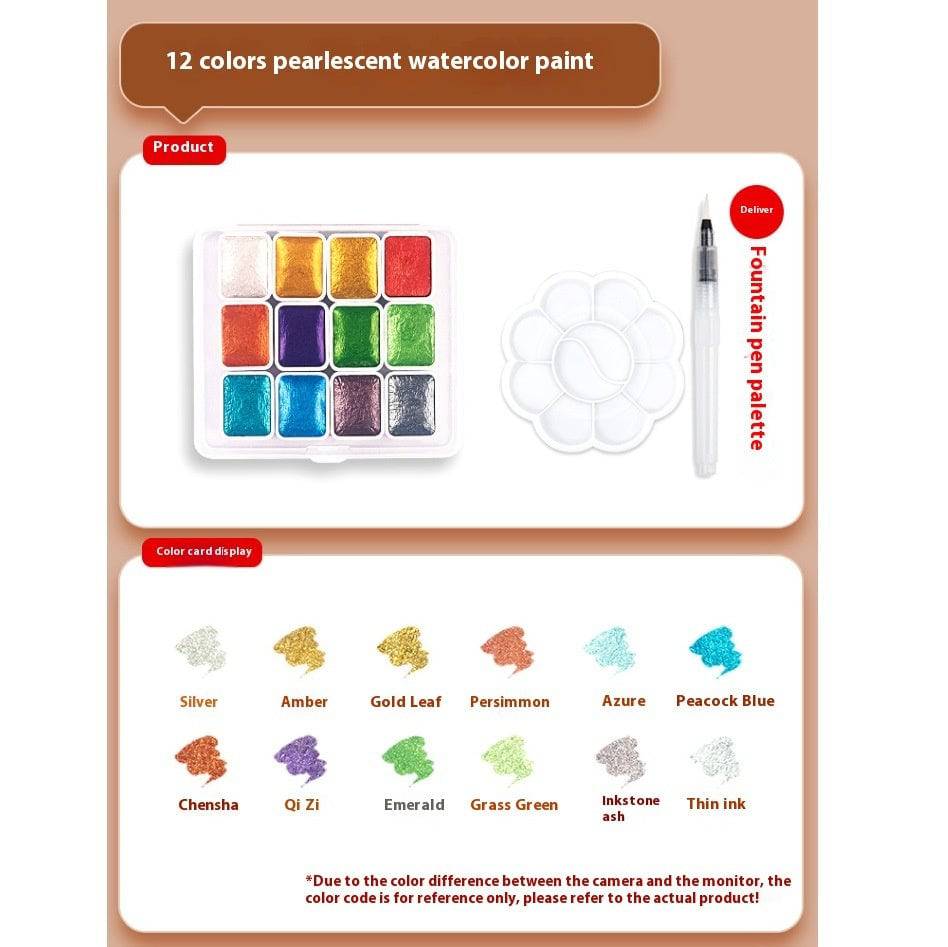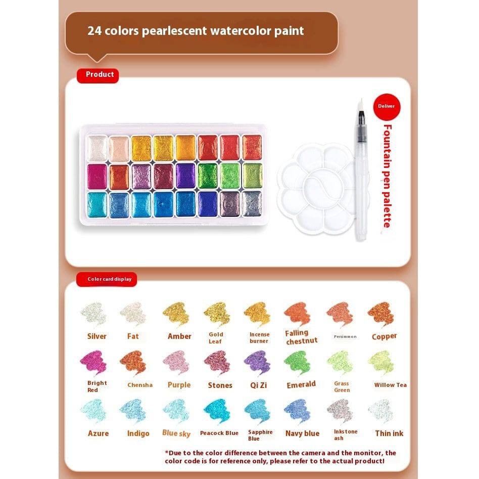 Elevate your artwork with this stunning Pearlescent Solid Watercolor Set! Perfect for artists, hobbyists, and beginners alike, these vibrant watercolors bring a luminous shine to every brushstroke. Designed for versatility, they are ideal for painting, lettering, and even crafting custom manicures!