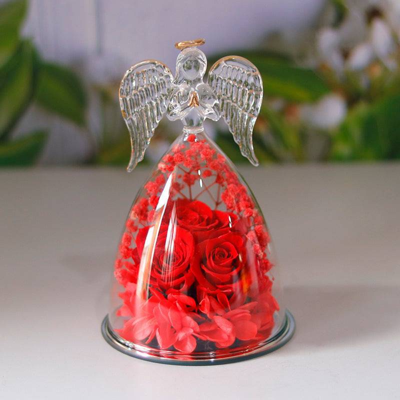 Capture the essence of everlasting love and beauty with the Eternal Angel Glass Rose Gift. Encased in a delicate angel-shaped glass cover, this enchanting arrangement features preserved roses and dried flowers, symbolizing timeless affection. Perfect as a heartfelt gift or a stunning décor piece, this elegant keepsake adds a touch of magic to any space.