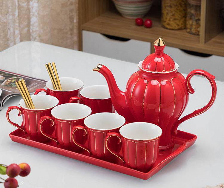- Complete Set: Includes a matching teapot, tray, and cups, making it perfect for serving guests at weddings, holiday parties, or family gatherings.