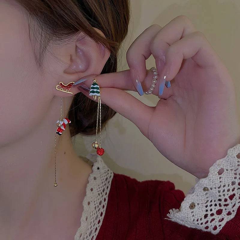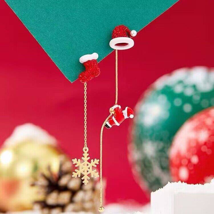 Add a touch of festive charm to your holiday look with these Ins Fashion Christmas Tree and Santa Tassel Earrings. Perfect for Christmas parties, gatherings, or casual outings, these earrings capture the joy of the season. The asymmetric design features a dangling Santa Claus and Christmas tree, complemented by golden tassels and cheerful embellishments. Lightweight and elegant, they are a must-have accessory for spreading holiday cheer.