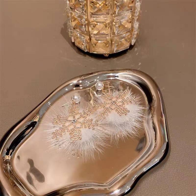 Elevate your holiday style with our Elegant Snowflake Zircon Earrings. Featuring sparkling zircon crystals in a delicate snowflake design and a chic pearl accent, these earrings are perfect for adding a touch of glamor to your festive outfits. The soft faux fur trim adds a cozy yet luxurious feel, making them a statement accessory for holiday parties, winter weddings, or any special occasion.