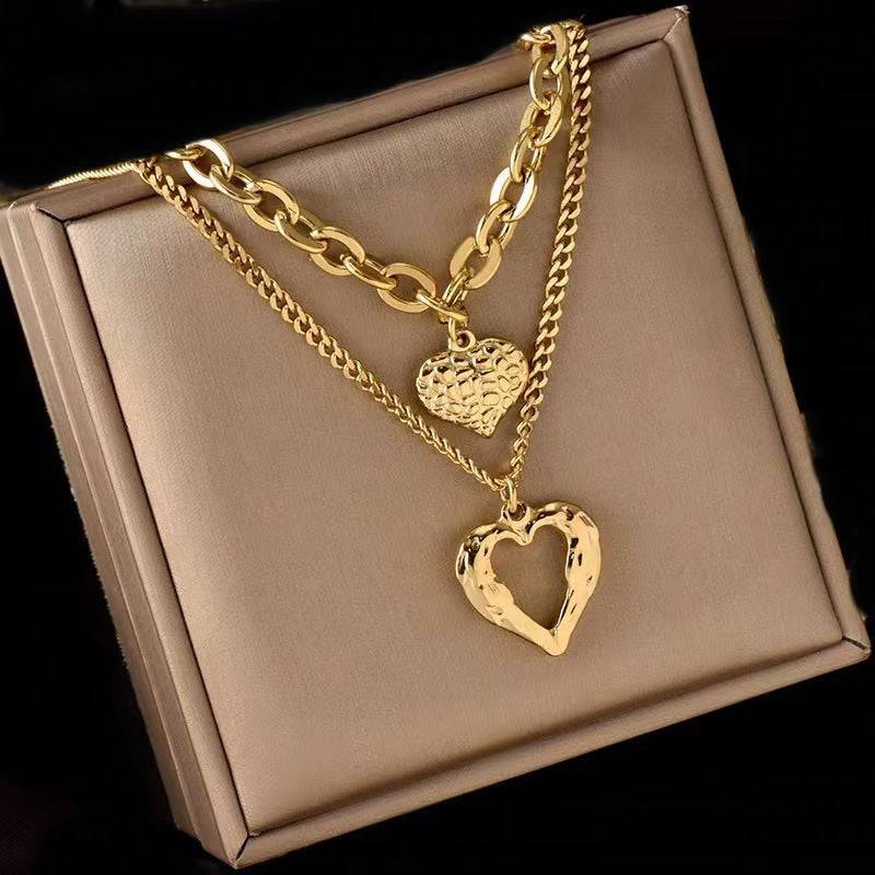 • Design: Layered necklace with two heart pendants