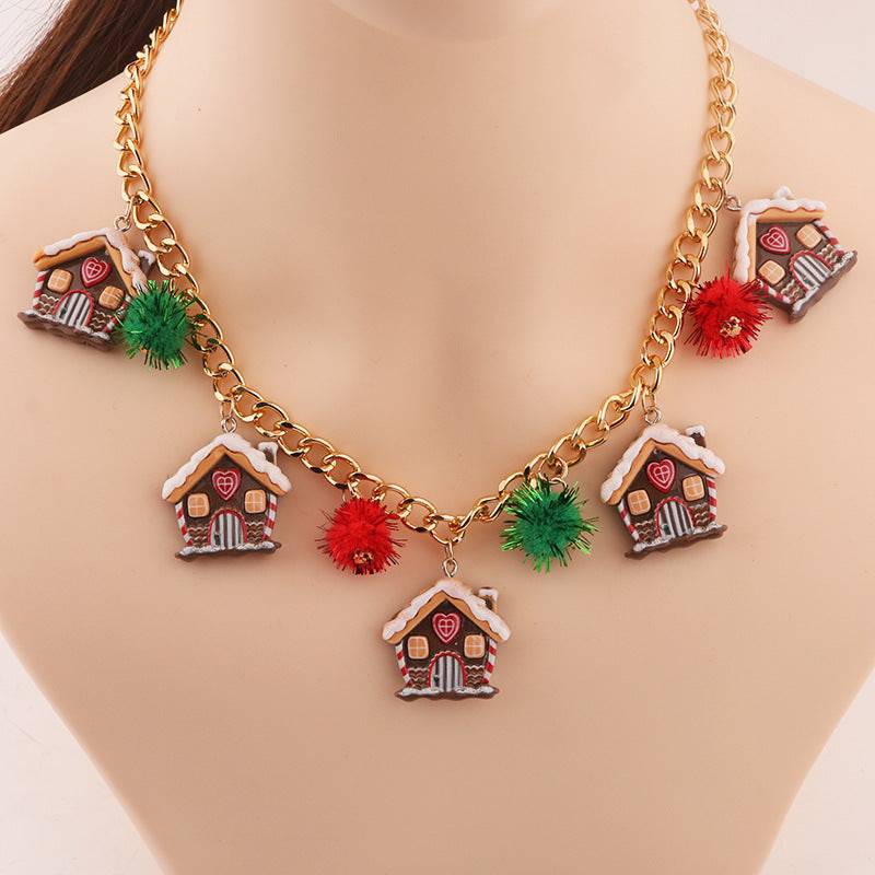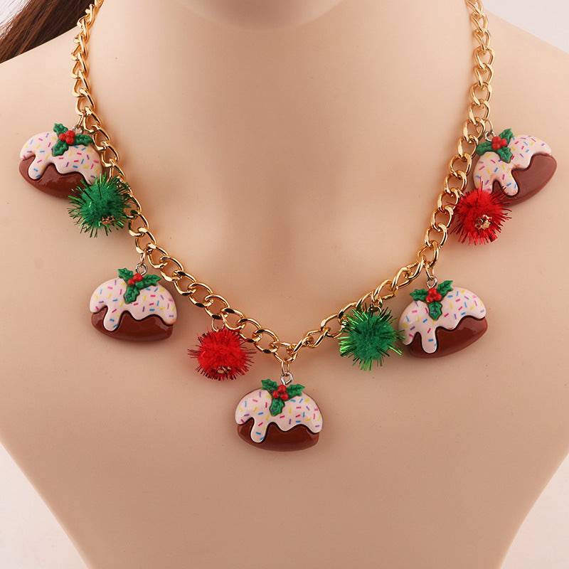Add a playful touch to your holiday outfit with this charming Christmas Necklace! Featuring delightful pendants shaped like festive stockings, gingerbread houses, and holiday puddings, each charm is crafted in vibrant holiday colors and adorned with fluffy pom-poms. Set on a gold-tone chain, this statement necklace is perfect for spreading holiday cheer in style.