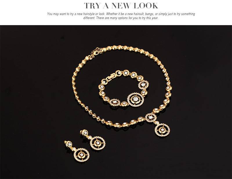 Elevate your elegance with our 4-Piece Rhinestone-Embellished Jewelry Set, crafted to dazzle. This exquisite set includes a necklace, bracelet, earrings, and ring, all adorned with sparkling rhinestones set in a high-quality alloy. Designed for special occasions, this set adds a touch of luxury to your attire, making it the perfect choice for weddings, galas, and evening events. The intricate detailing and coordinated design ensure a seamless and sophisticated look, giving you an aura of timeless beauty.
