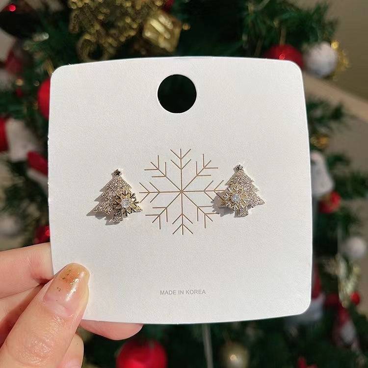 Elevate your holiday style with these exquisite Christmas Tree Earrings! These stunning studs feature sparkling rhinestones set in a festive Christmas tree shape, accented with delicate snowflake details for extra winter charm. Designed to rotate slightly, these earrings catch the light beautifully, adding a touch of festive elegance to any outfit.