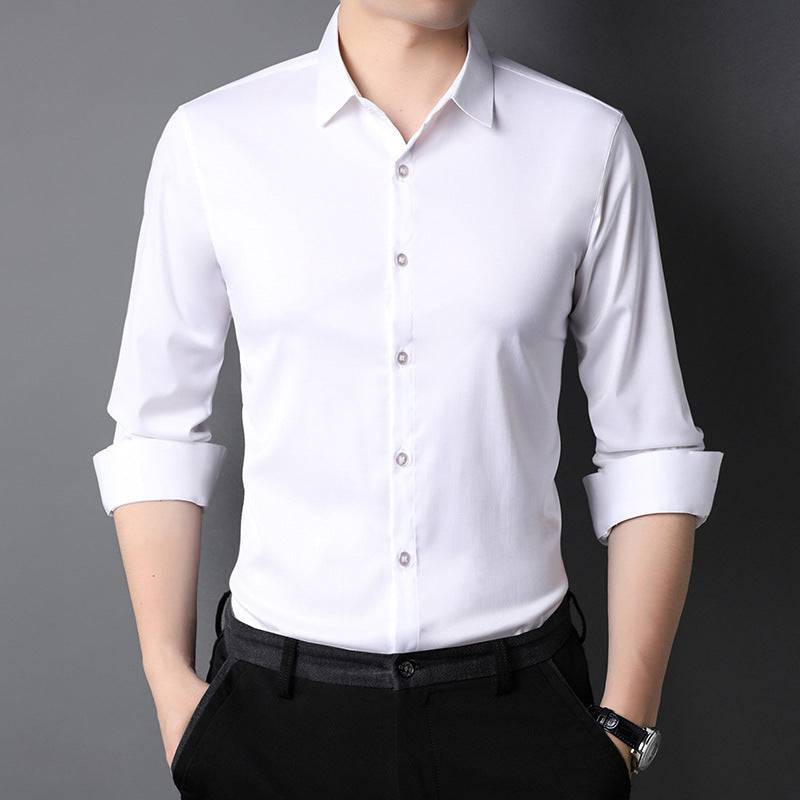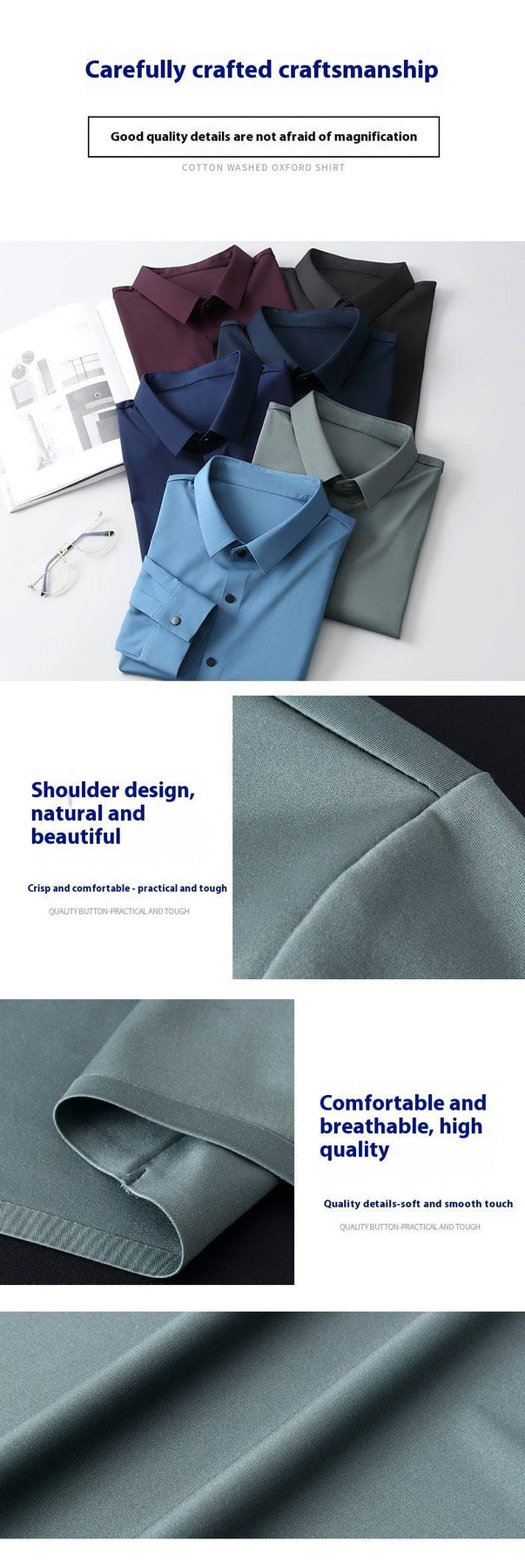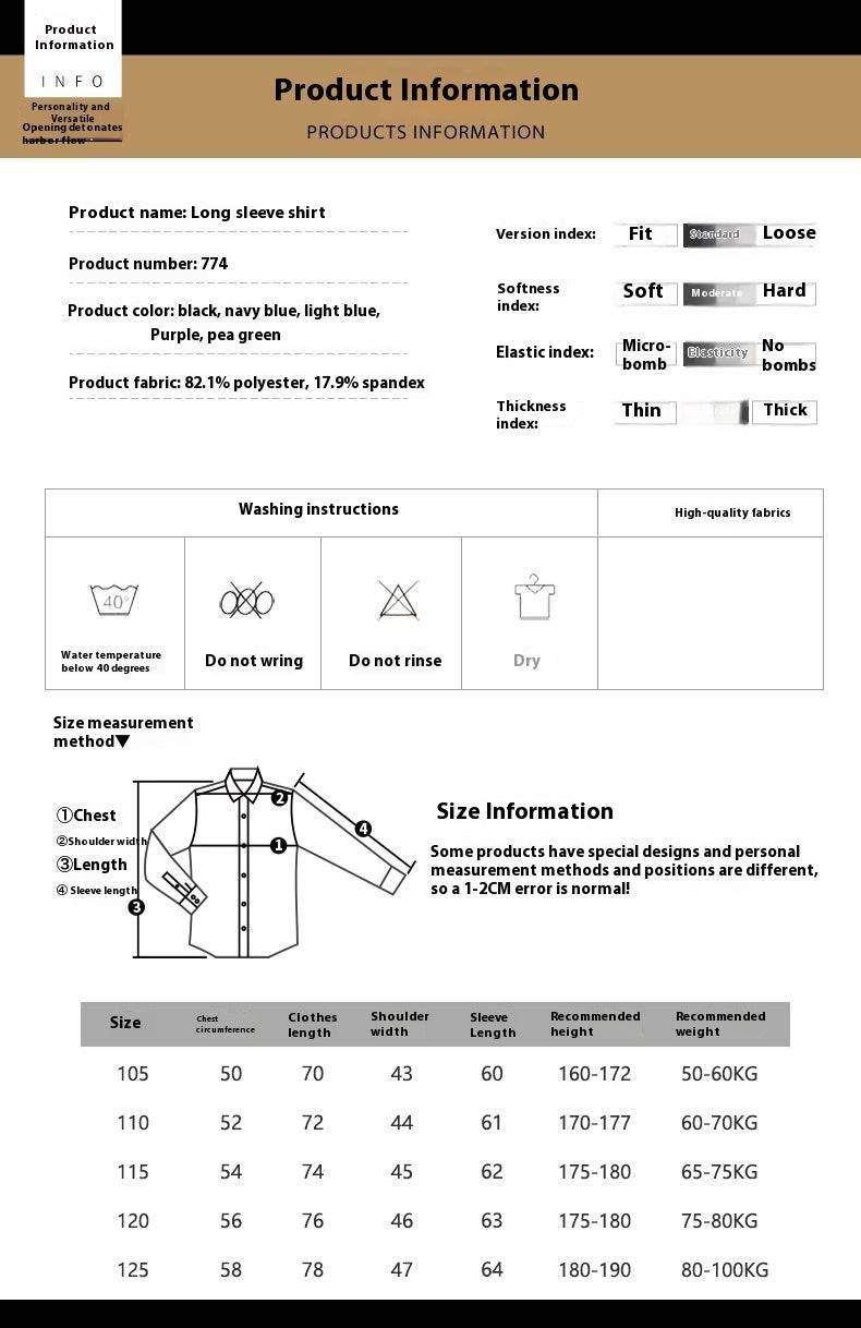 Step up your wardrobe with our versatile Men's Iron-Free Micro-Elastic Long Sleeve Shirt! This shirt, crafted with high-quality polyester and spandex blend, offers unmatched comfort and style. The soft, breathable fabric is designed to keep you fresh throughout the day, while the wrinkle-resistant finish ensures you always look sharp. Ideal for both casual outings and formal settings, this shirt’s natural shoulder design enhances comfort and allows a perfect fit.