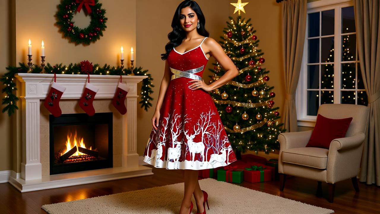 Step into the season of sparkle with the Enchanted Winter Reindeer Dress, a stunning blend of festive charm and timeless elegance. Whether you’re attending a cozy Christmas dinner, a winter wedding, or a sparkling New Year’s party, this dress ensures all eyes are on you — for all the right reasons.