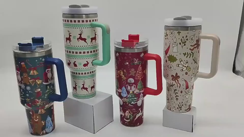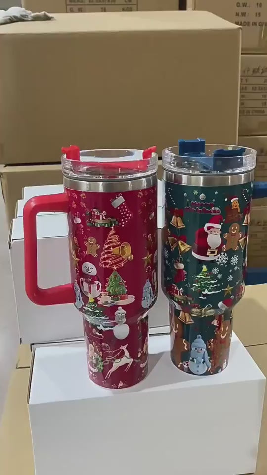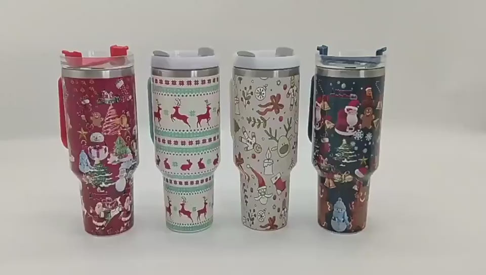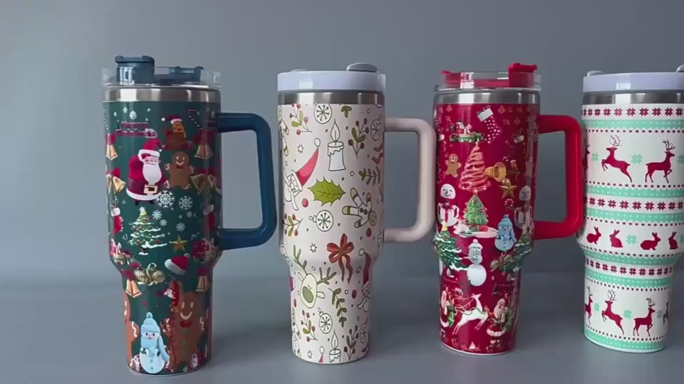• Product Name: Christmas Pattern Stainless Steel Tumbler with Handle, Lid & Straw