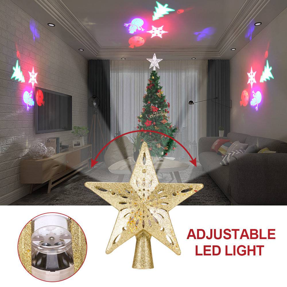 Add a magical touch to your Christmas tree with our Glittering LED Tree Topper Star! This stunning gold star not only lights up with festive brilliance but also projects beautiful snowflake and holiday shapes onto your ceiling, creating an enchanting atmosphere in your home. The LED projector within the star fills your space with colorful, twinkling patterns, making it the perfect centerpiece for your holiday decor. Easy to install and designed to fit securely on any tree top, this projector star topper combines beauty, function, and holiday cheer in one sparkling accessory.