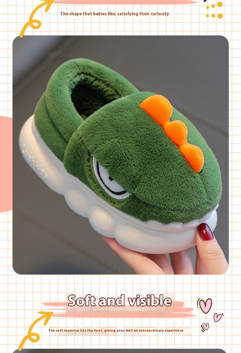 Keep little feet warm, comfy, and stylish with these Kids' Dinosaur Plush Slippers! Designed with an adorable dino face and playful spikes, these slippers are perfect for toddlers and kids who love fun, cozy footwear. Whether they’re running around the house or cuddling up for storytime, these slippers bring warmth and excitement to every step!