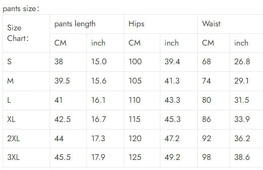 - Shorts: Elastic waistband with drawstring, roomy side pockets