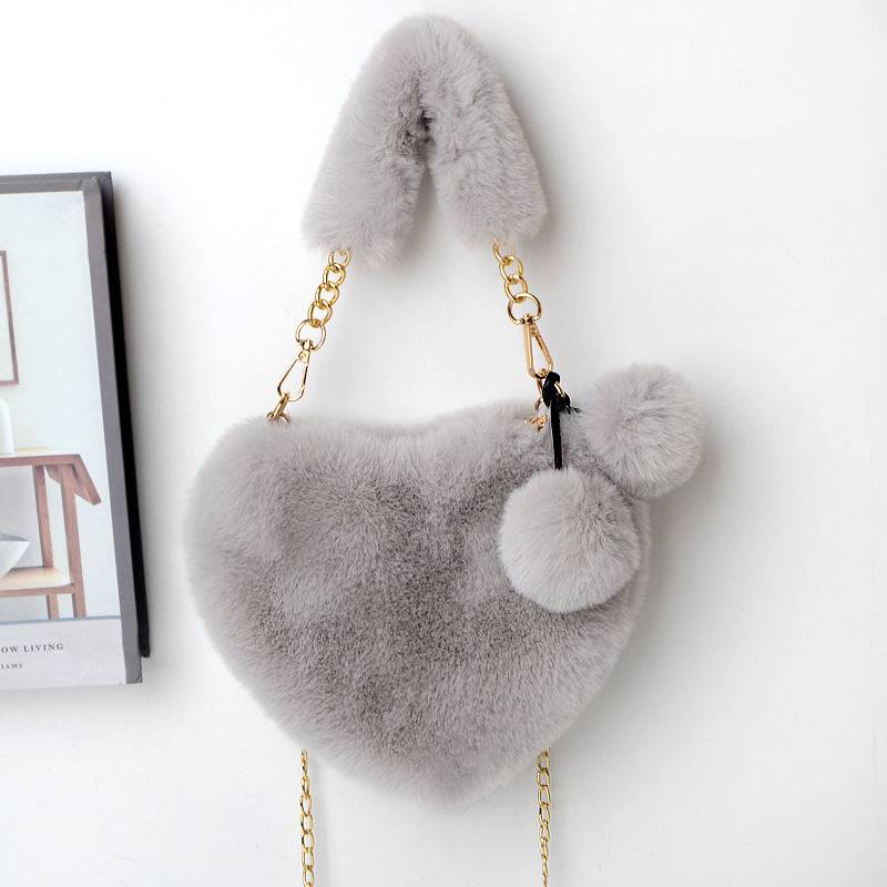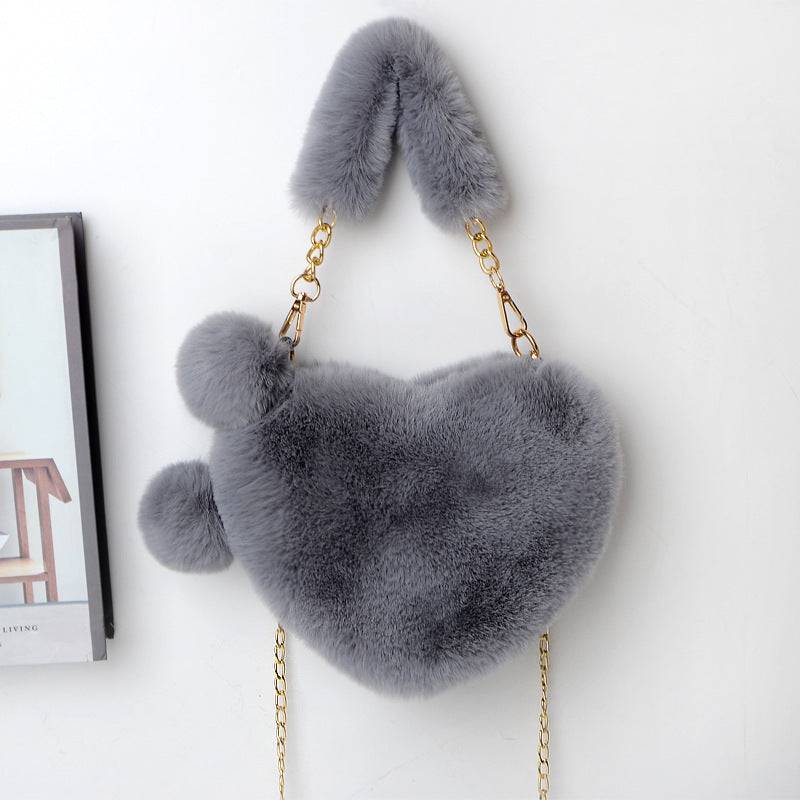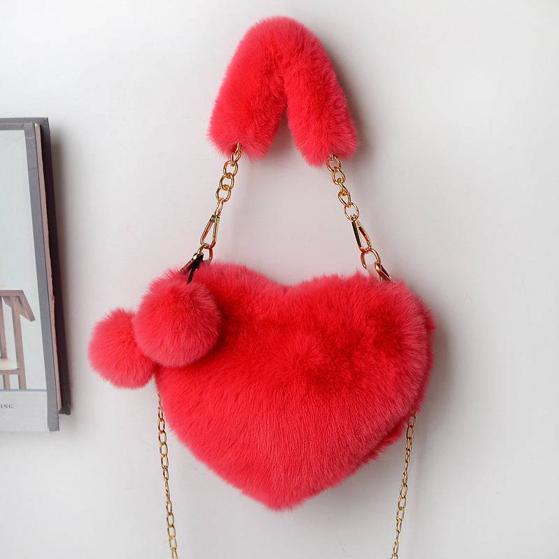 Add a touch of love to your outfit—order your Heart-Shaped Plush Handbag today and carry your essentials in cozy style!